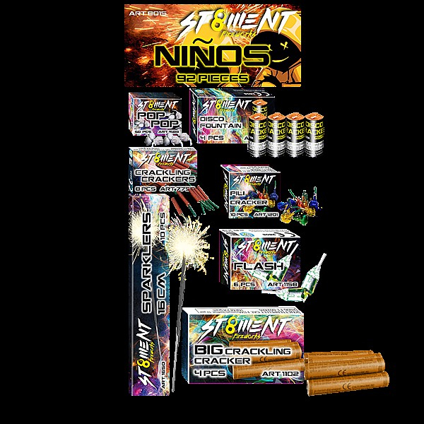 Wie zum Beispiel Knisterböller, Pili-Cracker, Popping Peas, Sternchen, Blinkies, kleine Knister-Böller und Disco-Cracker.